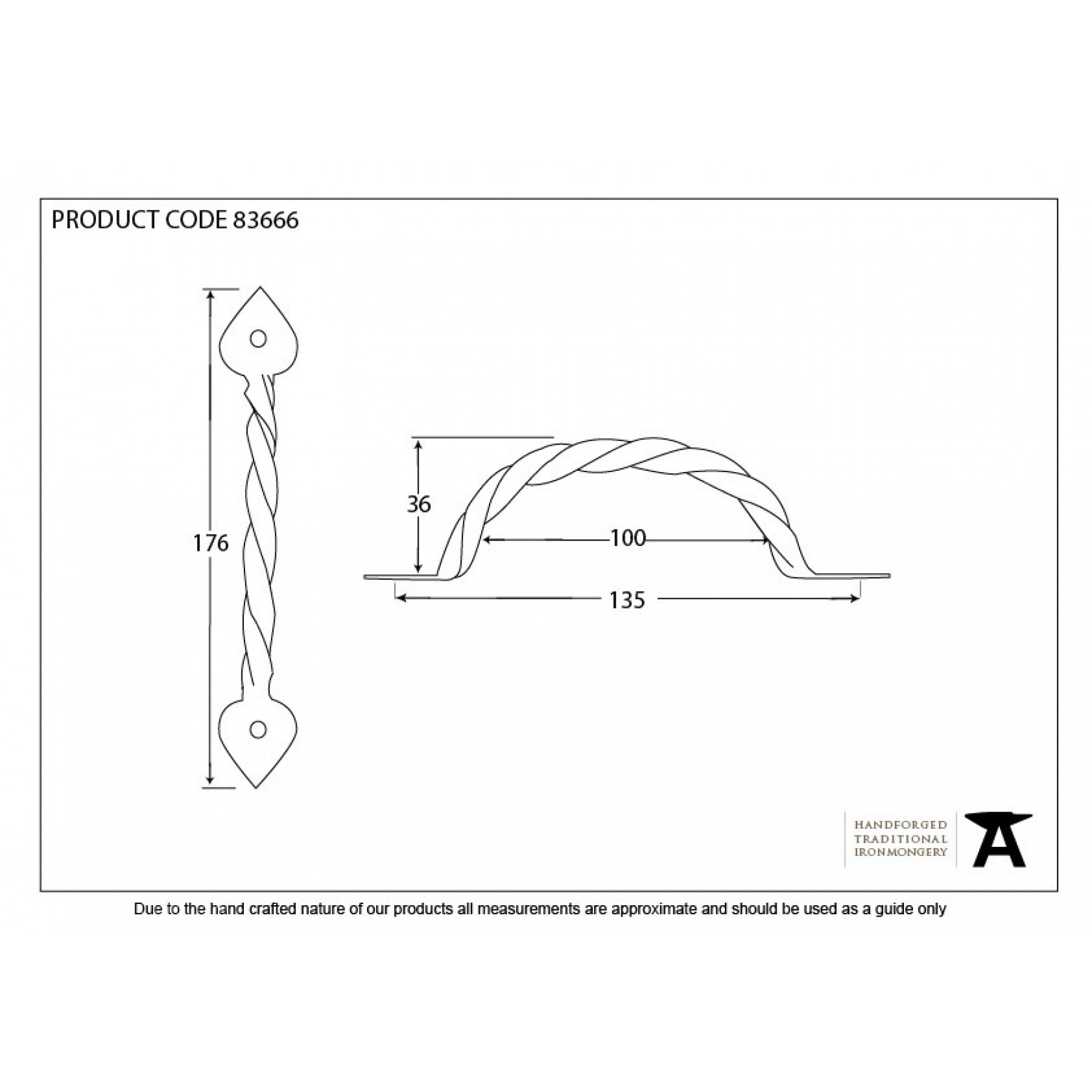 A slim twisted D handle with beaten spear-shaped tips, ideal for use on cupboards or drawers. Supplied with all necessary matching screws.
