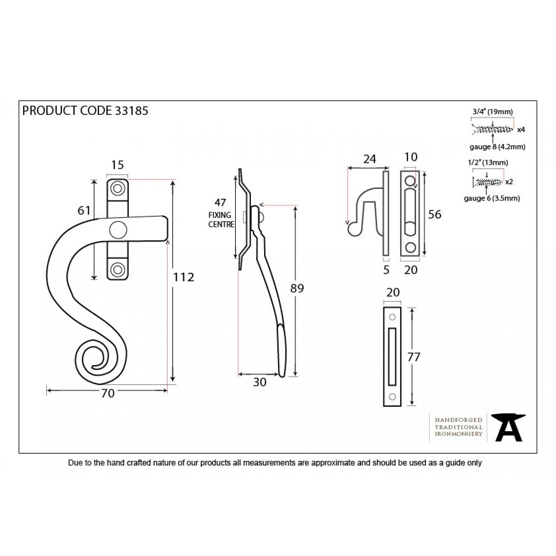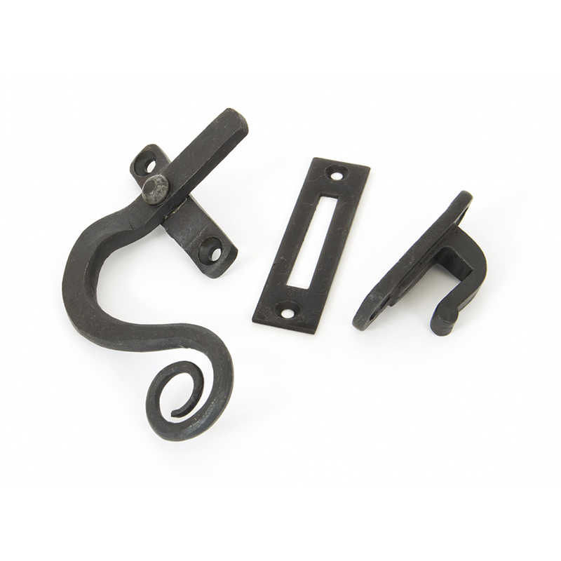 A finely proportioned non locking monkey tail fastener with its sweeping curves come complete with a mortice and hook plate. Fastener can be fitted to a narrower frame and looks very traditional with it's waxed finish. Supplied with necessary fixing screws.